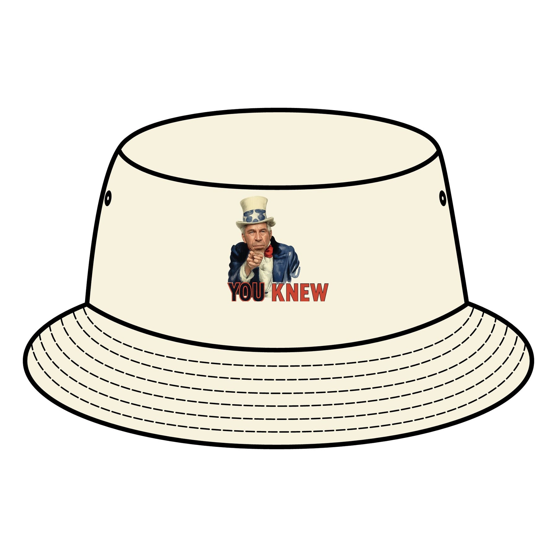 Lightweight, all-cotton bucket hat with a vintage-inspired patch at the front that reads “YOU KNEW.” It carries a slightly retro, tongue-in-cheek vibe — cheeky without shouting. The reinforced brim keeps its shape through sun and travel. Wear it tilted back with a faded tee and denim for weekend markets, or pull it low at outdoor shows to stay shaded while keeping the look intentionally ironic. The soft spun cotton feels breathable on hot days and the tear-away label keeps the neck free from irritation. One-size fit for easy packing and days when you want to travel light but bring personality along.